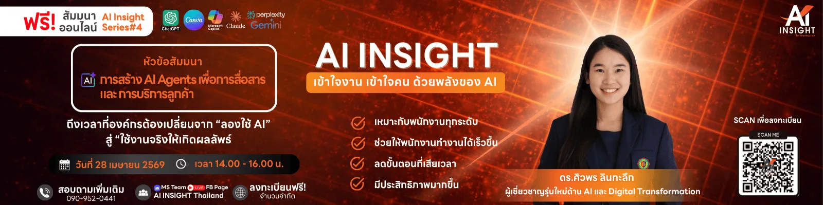 เข้าร่วมสัมมนาออนไลน์ฟรี กับเนื้อหาที่ช่วยให้คุณเข้าใจการนำ AI Agent ไปประยุกต์ใช้กับงานสื่อสารและงานบริการลูกค้าได้อย่างเป็นรูปธรรม